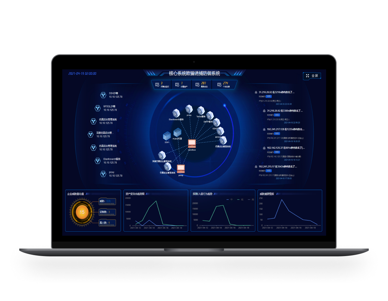 攻擊欺騙誘捕防御系統(tǒng)基于網(wǎng)絡(luò)欺騙和主動(dòng)防御理論,通過(guò)蜜罐、蜜餌等構(gòu)建沉浸式誘捕蜜網(wǎng),混淆攻擊視聽,增加攻擊代價(jià),達(dá)到延緩攻擊進(jìn)程,進(jìn)而保護(hù)用戶資產(chǎn)的目的